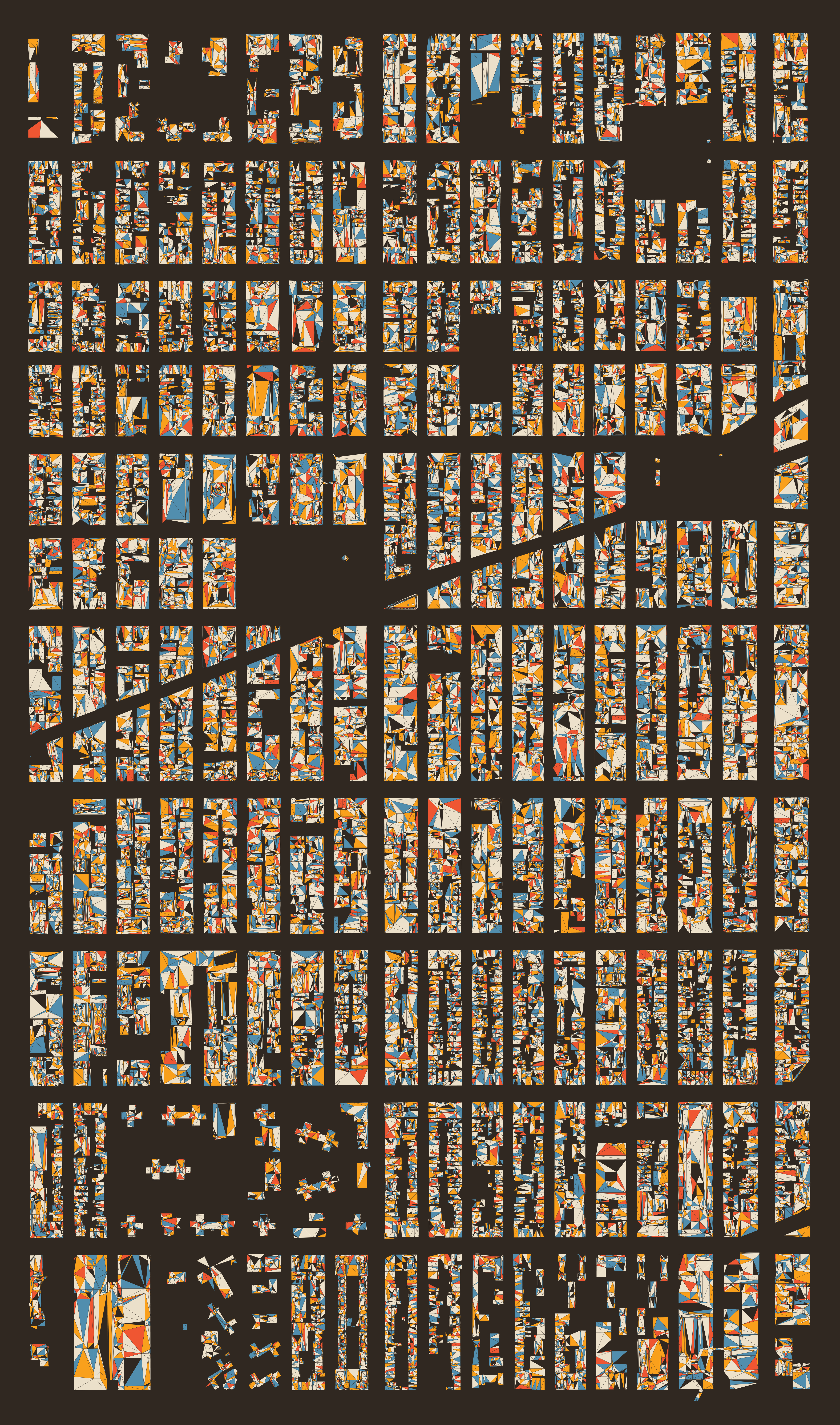 Nolli Manhattan is A plan view of Midtown Manhattan. The Nolli Manhattan presents the stained textures of traditional blocks of New York. All the memories on the Midtown have been reflected in forms and corners by specific colors, which will evoke someone’s memories, too, of the beauty of Manhattan’s urban fabric.