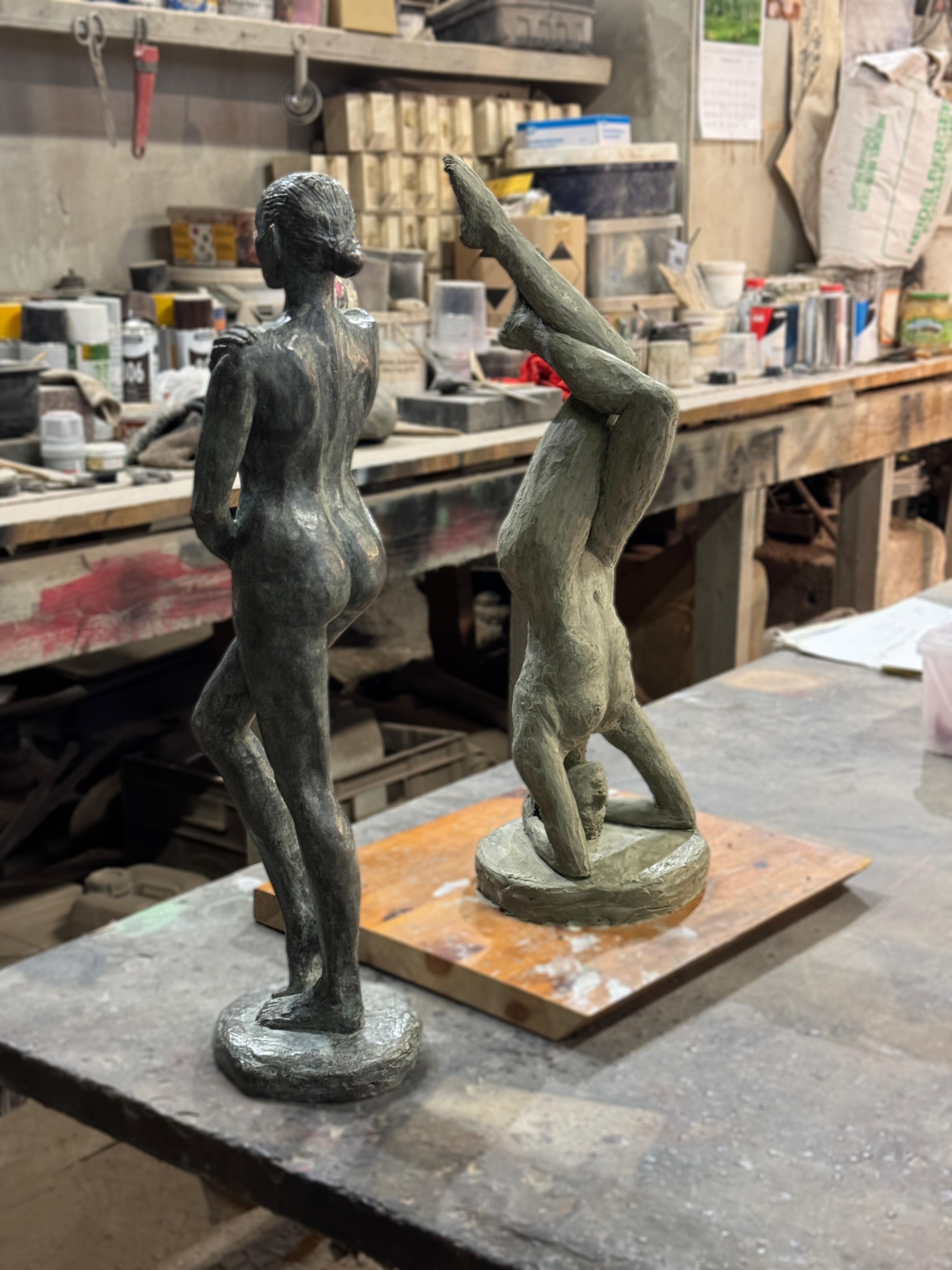 From there, the sculptural process becomes a practice of devotion and discipline. NYG spends one full month sculpting each figure, working almost every day to refine anatomy, proportion, gesture, and surface. The month-long process ensures that each work moves through stages of rough form, anatomical correction, emotional calibration, and surface refinement before it ever leaves her hands for bronze casting.